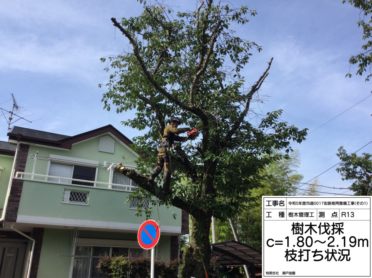 本工事では西海子小路の桜12本伐採3本剪定でした。