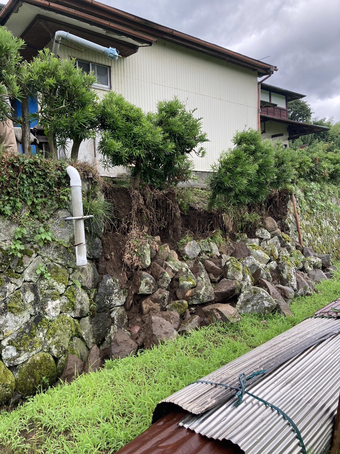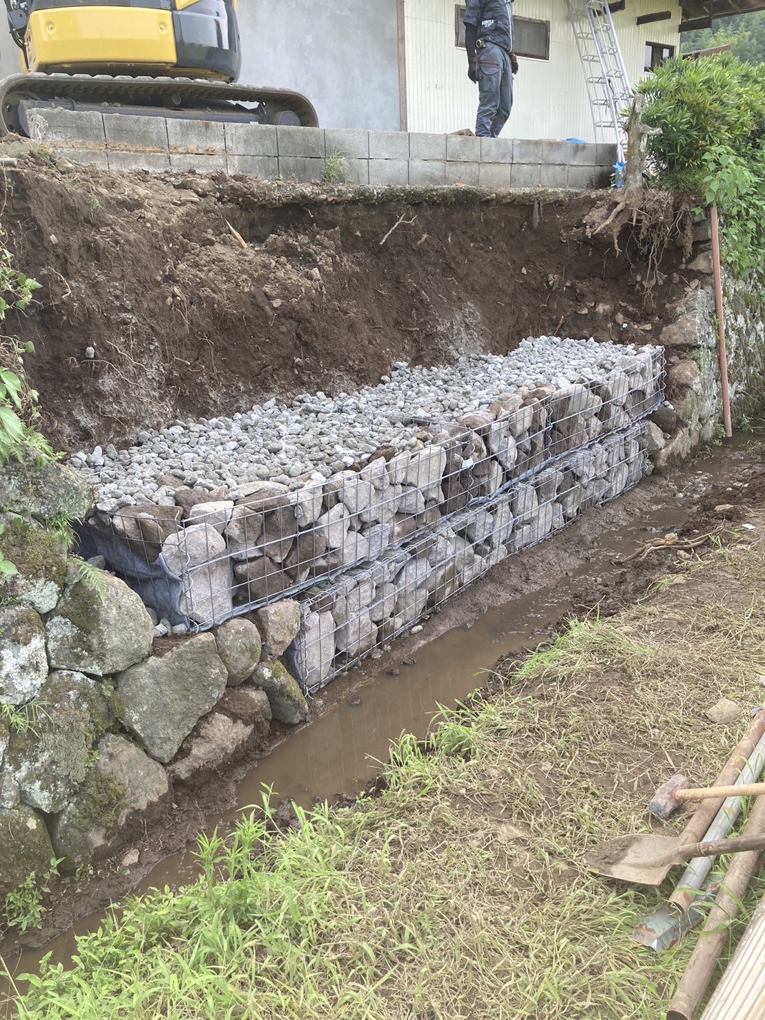 民家の方まで崩落しかけていたため早急に工事に取り掛からせていただきました。